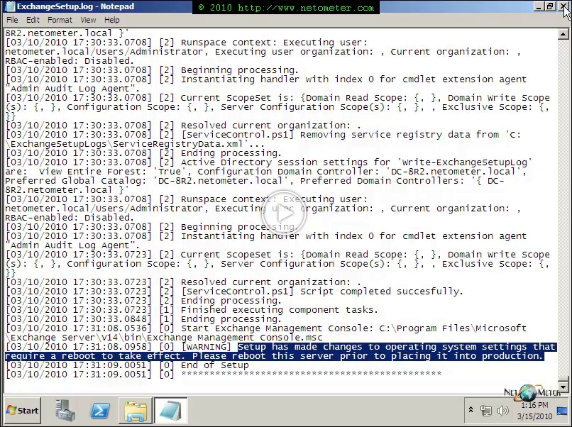 In this screencast, we will start with the simplest scenario – greenfield installation of Exchange Server 2010 on a Windows Server 2008 R2.